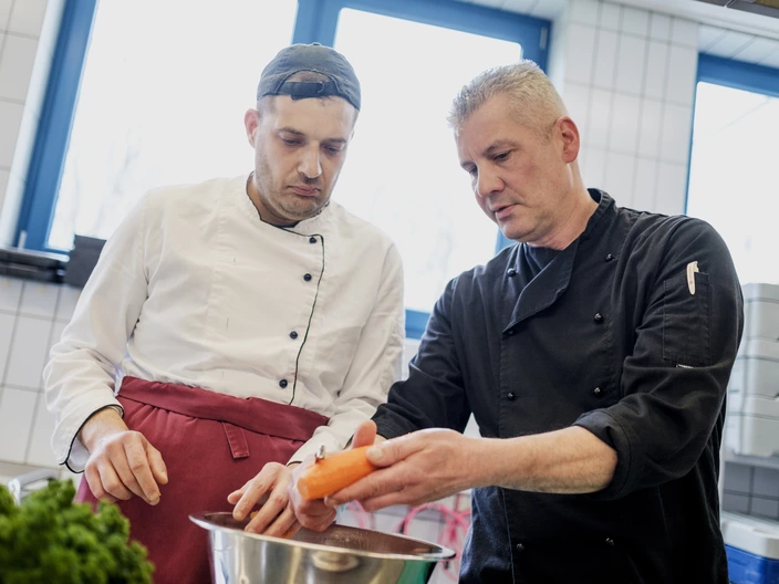 Als Fachpraktiker*in im Bereich Küche ist das Vorbereiten von Zutaten, das Zubereiten von Speisen und das Anrichten ein großer Teil deines Tätigkeitsbereichs. Du lernst alle Vorschriften um Lebensmittelhygiene und das Arbeiten in der Küche kennen. Du bist Teil der Versorgung der Gäste und unterstützt die Speisenausgabe und den Einkauf. In einer Küche ist außerdem deine Kreativität, Stressresistenz und Begeisterungsfähigkeit für Ernährung gefragt.